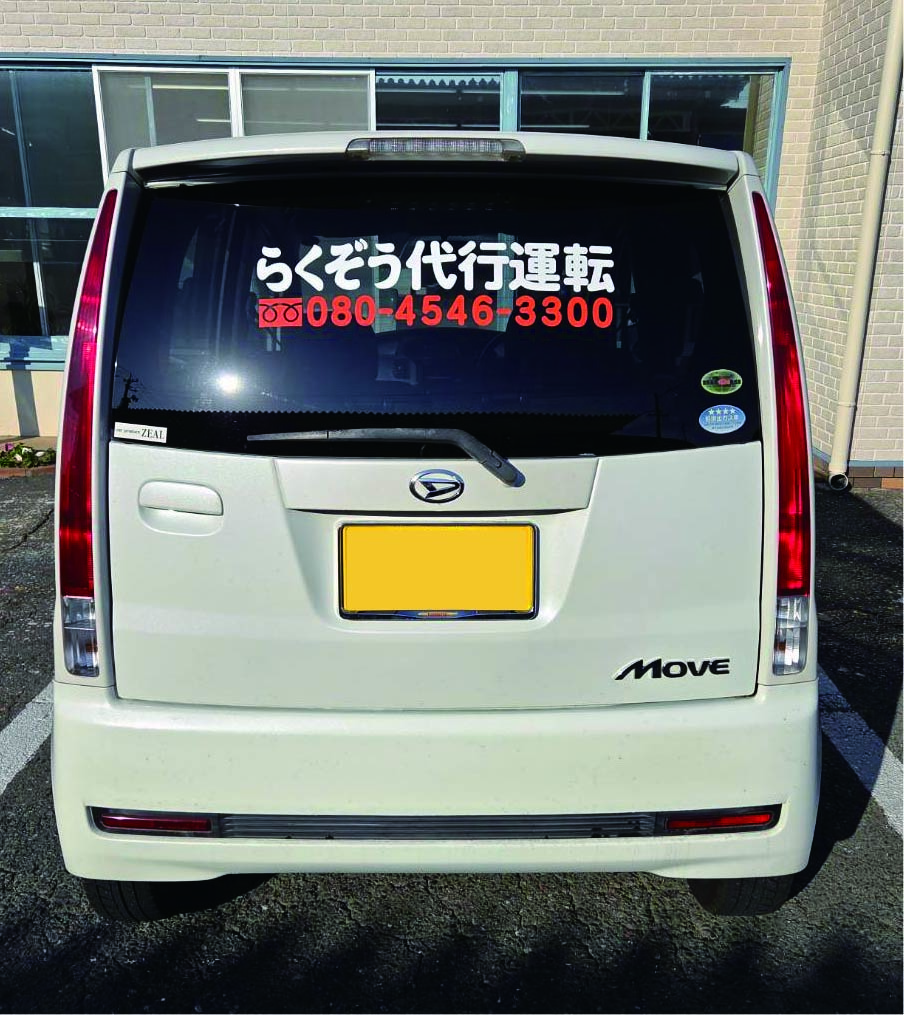 令和7年12月、らくぞう代行運転様の車にカッティングシートを貼らせていただきました。