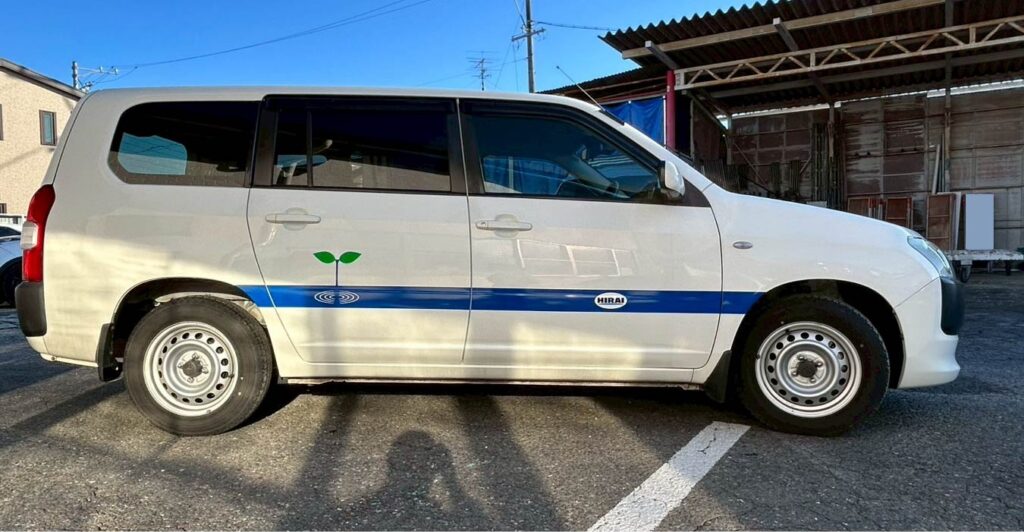 令和7年12月、平井工業株式会社様の車のデザインと貼り作業をさせていただきました。